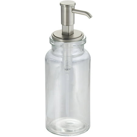 InterDesign Westport Glass Soap and Lotion Dispenser Pump, Clear\/Satin: Soap dispenser pump holds 15 ozRefillable dispenserWide opening for easy refillsGlass lotion dispenser is ideal for bathrooms or kitchensGlass pump with rust-proof, satin finish plastic pump head3\
